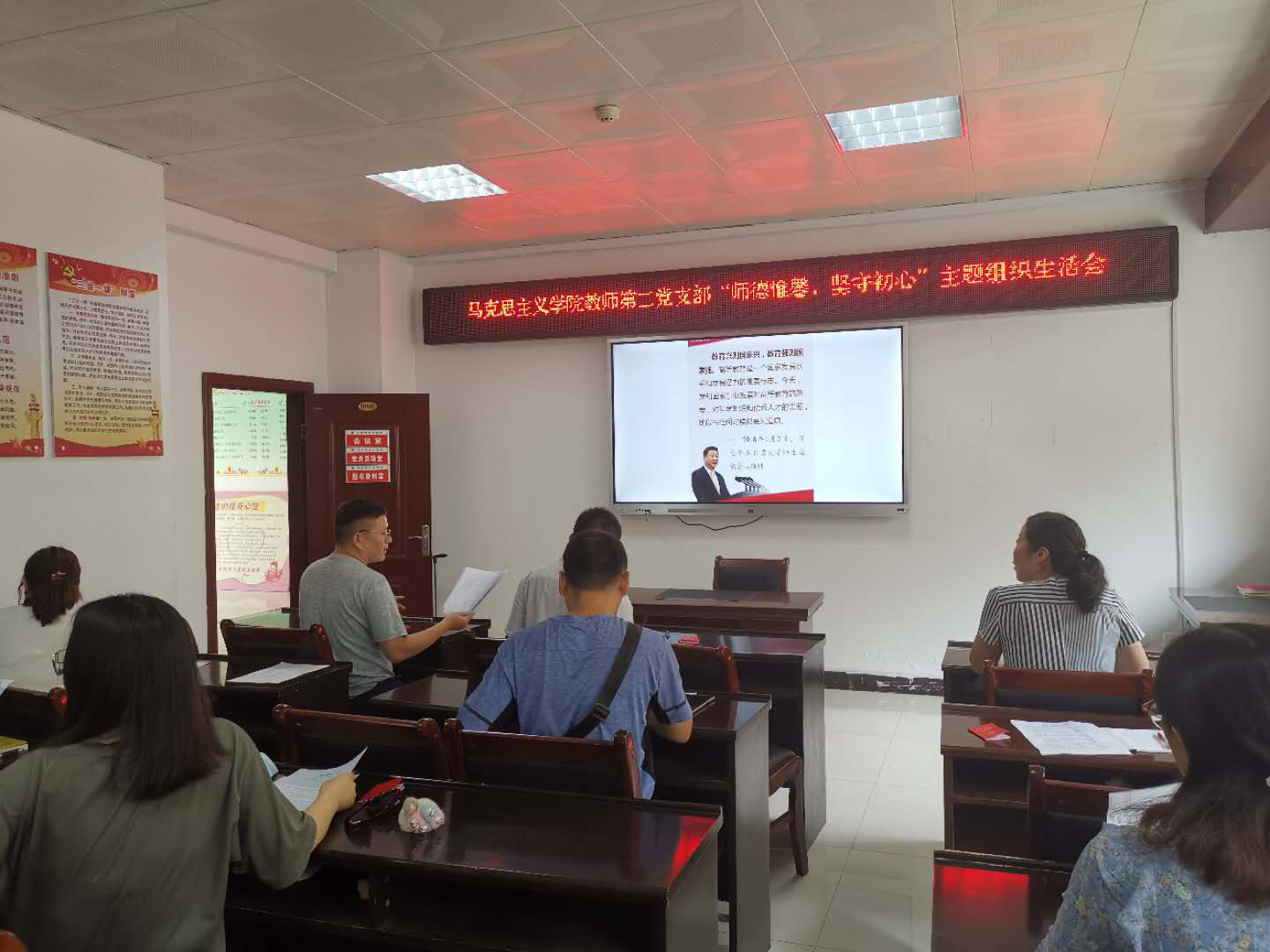 会上,各党员以“ 师德惟馨 ,坚守初心”为主题,结合自身工作实际,依次发言。朱丹果、齐潇晓、秦艳娜、朱林海、李博等教师进行了积极发言和讨论,大家深入剖析加强师德师风建设的必要性,就如何加强师德师风建设提出了很多有建设性的意见和建议,大家一致认同:教师发展,师德为要。好老师虽然没有统一的模式,但高尚的师德一定是共同的、必不可少的特质,并纷纷表示,要时刻勉励着自己自觉增强立德树人、教书育人的荣誉感和责任感,学为人师,行为世范,努力当好员工健康成长的指导者和引路人。