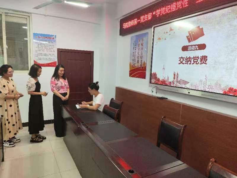 最后,宣传委员邱丁楠带领大家重温入党誓词,全体党员向组织委员向军贤交纳了党费。