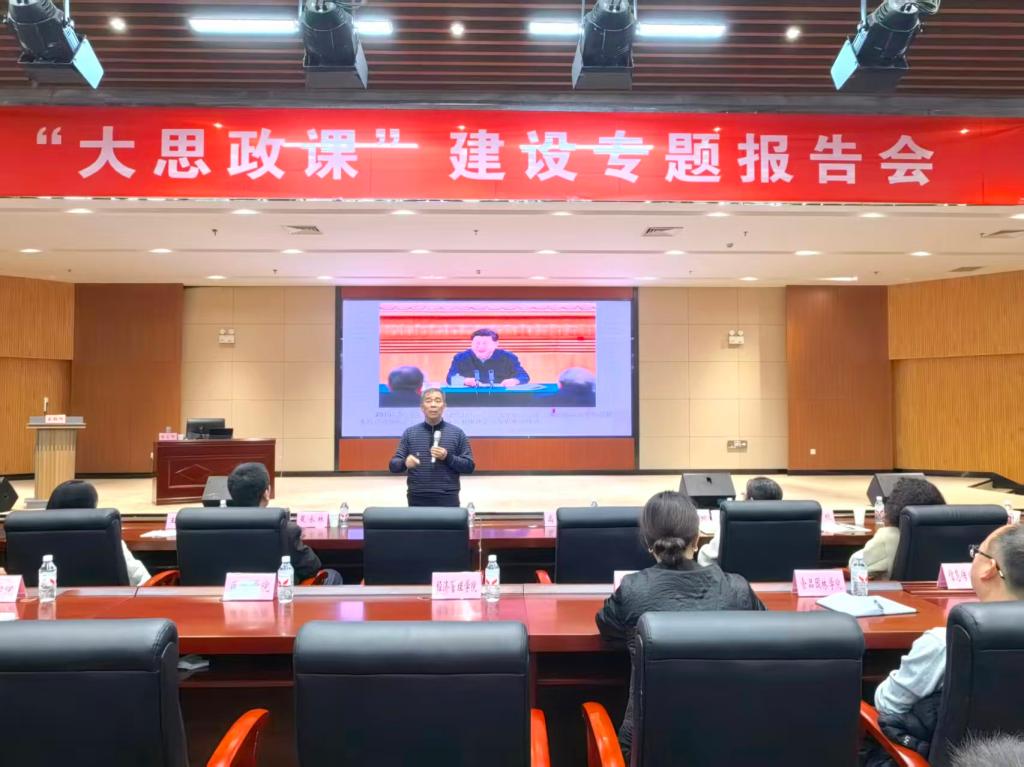 为深入学习贯彻党的二十届四中全会精神,全面落实立德树人根本任务,持续深化“大思政课” 建设内涵,创新推进思政课实践教学改革路径,根据《中共太阳成集团官网委员会关于开展第二届“大思政课”建设暨实践教学成果展示活动的通知》,12月19日下午,太阳成集团tyc234cc特邀西安电子科技大学太阳成集团tyc234cc夏永林教授,河南师范大学太阳成集团tyc234cc二级教授蒋占峰,在应工校区图书馆一楼报告厅作专题报告。公司党委委员、宣传和统战部部长王静宇,学工部、教务处、科研处、校团委负责人,各院部主管教学科研工作副经理,三门峡市大中小学思政课一体化虚拟教研室成员及全体专兼职思政课教师参加报告会,报告会由公司党总支书记、经理孟昭阳主持。