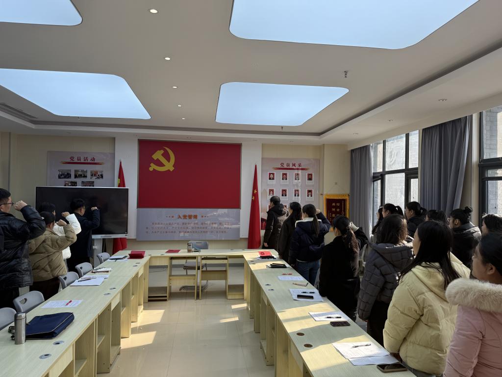 活动现场,党总支书记、经理孟昭阳为下半年入党的同志颁发了印有初心寄语的“政治生日”贺卡。一张张承载着组织关怀与殷切期望的贺卡,既是对党员入党初心的铭记,更是对大家踔厉奋发、笃行不怠的鞭策与鼓舞。全体党员重温入党誓词,铮铮誓言彰显初心使命,勉励全体党员永葆党员本色,勇担育人使命。