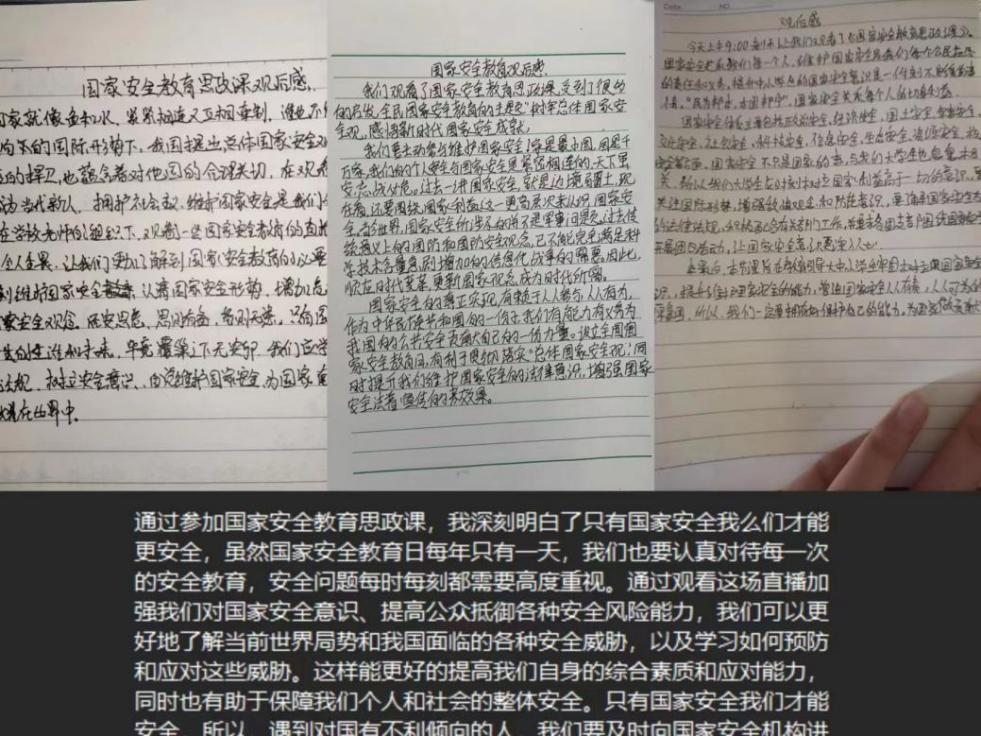 计算机应用五班马尧帮同学说:“通过本次学习,我对国家安全有了更加深刻的了解,作为新时代老员工,我们应该认识到怎样去维护国家安全,增强防范意识和责任意识。国家安全问题意义重大,不可轻视,人人有责,不仅我们自己要做到提高国家安全意识,也要倡导他人重视国家安全。虽然国家安全教育课不是天天都有,但是安全问题每时每刻都要重视。”