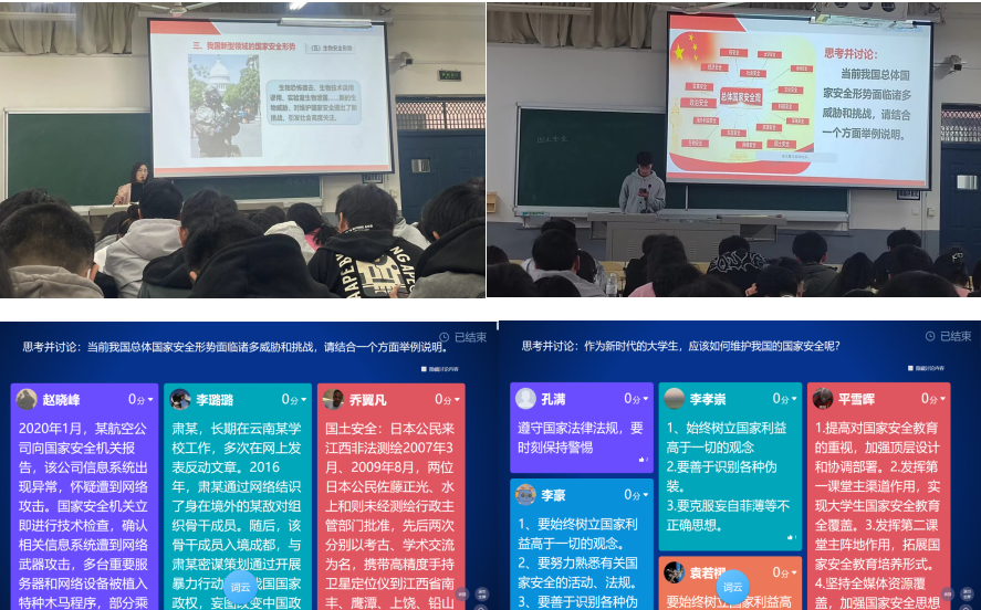 国防教育教研室全体教师利用军事理论课课堂开展国家安全教育专题教学活动。专题教学围绕总体国家安全观的主要内涵与精神实质、当前我国国家安全面临的威胁与挑战、如何践行总体国家安全观等,通过案例讲解、视频播放、课堂讨论等多种教学形式,帮助公司员工提升国家安全意识,提高员工的判断能力和辨别能力,帮助员工树立正确的国家安全观念。