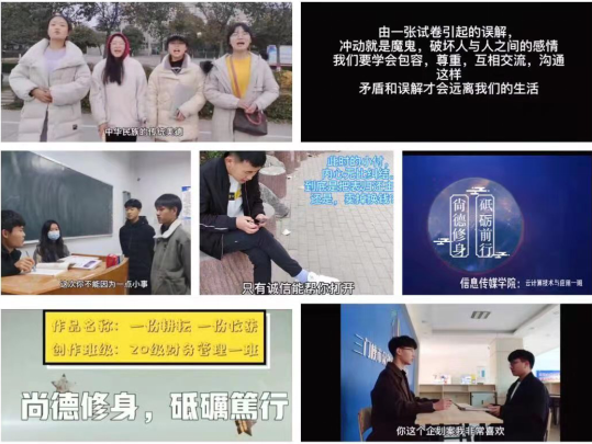 经过评选小组的打分和研究协商,《德以养正,行以致远》、《逆境成长,砥砺前行》、《青春不留遗憾》等3部作品荣获“一等奖”;《高职生恋爱课堂》、《友你友我》、《试卷风波》、《将心比心》、《校园冷暴力》、《校园贷》、《诚信》等7部作品荣获“二等奖”;《一件小事》、《宿舍之德》、《爱公司园》、《大学考试》、《劳动与态度》、《道德小剧场》、《做最好的自己》、《流失道德》、《代价》、《一分耕耘一分收获》等10部作品荣获“三等奖”。