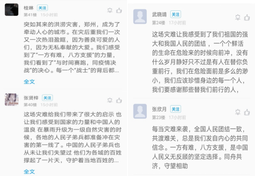 课堂上,同学们踊跃参与,纷纷分享自己在这场灾难中的志愿经历以及成长感悟,并表示通过这堂“开学第一课”,更加深刻认识到中国特色社会主义制度的显著优势,理解伟大抗疫抗洪精神的丰富内涵,进一步坚定了“四个自信”,今后会自觉弘扬伟大抗疫抗洪精神,立爱国之志,践报国之行,不负韶华,勇于担当,为民族复兴贡献青春力量。
