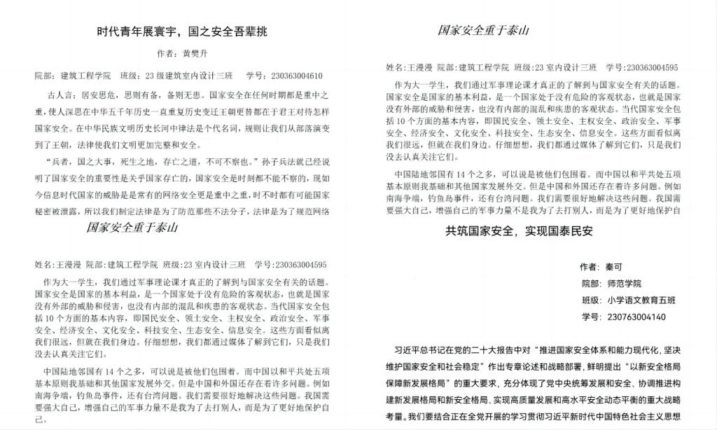 为了进一步加深员工对国家安全知识的理解和认知,提高员工的国家安全意识,国防教育教研室结合《国家安全教育》课程教学,开展了富有实践意义的国家安全教育主题优秀网文征集活动。这项活动旨在通过激发员工的创作热情和思维活力,引导他们主动关注国家安全问题,结合课堂所学知识进行深入思考,增强维护国家安全的责任感和使命感。同时,通过征集优秀网文,也可以促进员工之间的交流和学习,营造浓厚的国家安全教育氛围。
