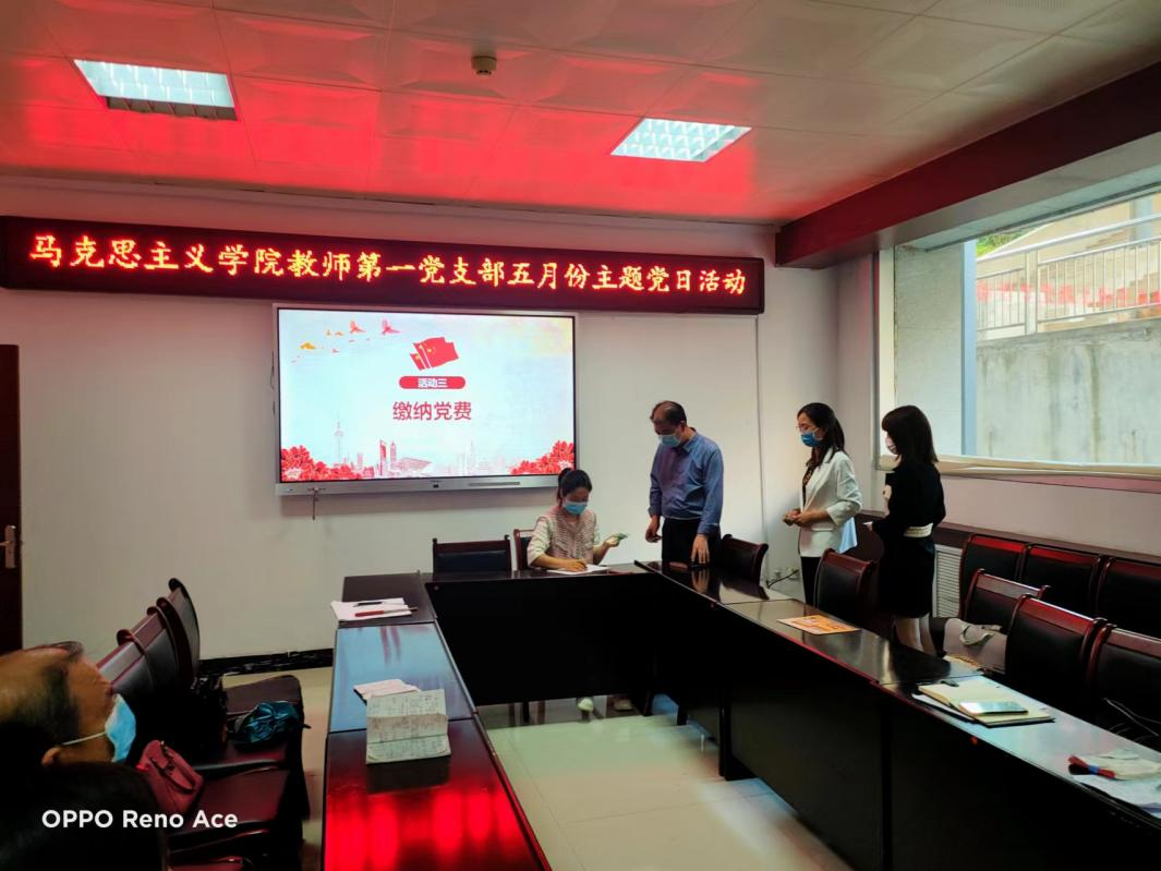 第三项,交纳党费。全体党员现场交纳5月份党费,履行党员义务,牢记党员职责。
