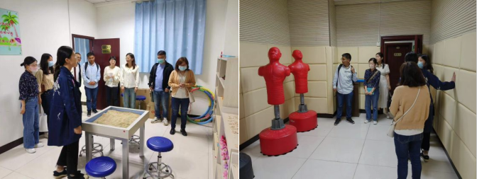 首先,支部全体党员在组宣委员李闯的带领下齐声重温入党誓词,回溯入党初心,激发使命担当。其次,全体党员诵读经典——《念奴娇·追思焦裕禄》,从焦裕禄精神中汲取前行的力量,进而达到凝心铸魂筑牢根本、锤炼品格强化忠诚、实干担当促进发展、践行宗旨为民造福、廉洁奉公树立新风的目标。然后,集体学习讨论习近平总书记在学习贯彻习近平新时代中国特色社会主义思想主题教育工作会议上的重要讲话。支部全体党员依次在党旗面前交纳了本月党费。最后,全体党员参观了心理健康教育中心 ,并通过沙盘游戏、仪器设备、绘画活动等方式体验心理赋能,不仅对心理健康教育中心的设备和功能有了进一步的了解,也帮助党员教师解决疑惑、疏解情绪、坚定信念。