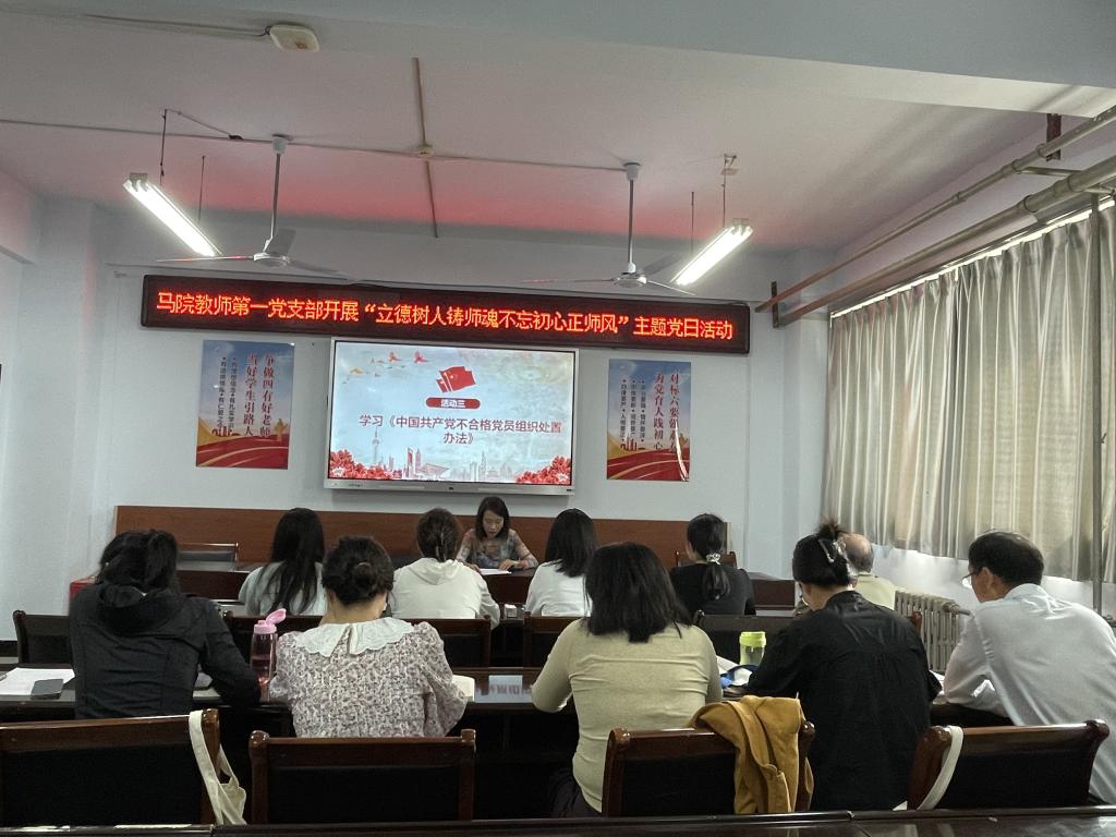 随后,支部组织委员领学《中国共产党不合格党员组织处置办法》。会议围绕处置办法概述、不合格党员认定标准、处置程序与方式、监督与保障措施以及加强党员教育与管理五个方面开展学习。全体教师纷纷表示将认真学习《中国共产党不合格党员组织处置办法》,不断提高自身的党性修养,以实际行动践行党的宗旨,在工作和学习中发挥先锋模范作用。