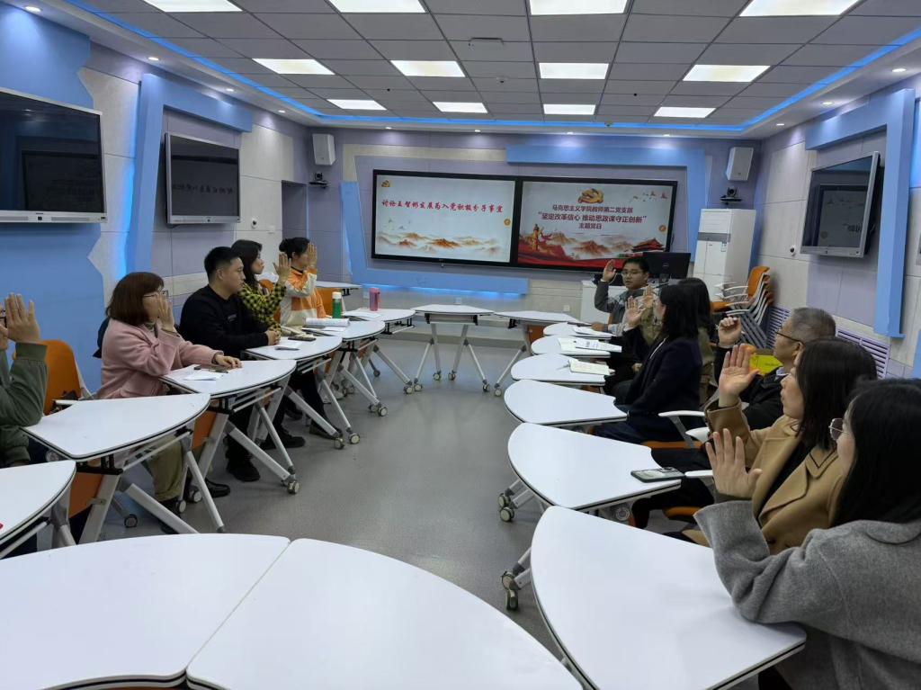 为深入学习贯彻落实党的二十届三中全会精神,切实践行新时代党的先进性建设总要求,推动习近平新时代中国特色社会主义思想落地生根,太阳成集团tyc234cc教师第二党支部于近日在2304智慧教室举行“坚定改革信心 推动思政课守正创新”主题党日活动。会议由支部书记雷霞主持,全体党员参加会议。